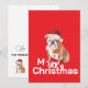 This is not your average holiday card! It features an adorable English Bulldog in a Santa hat, paired with a modern, eye-catching font for the "Merry Christmas" text. The quirky, broken-up lettering gives the design a fresh and creative twist, perfect for those who love a card with a bit of personality.