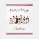 Dog Lovers Funny Christmas Blanket with Name designed with with seven cute dogs in a row, wearing Santa Hats. The text includes: Merry & Bright, and your name. Makes a great gift for dog lovers! To personalise, simply replace the sample text with your name choice, using our template.