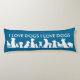 A dog lovers large pillow sometimes called a body pillow with cute lineup of dog breeds that cover the pillow from one end to the other and the words I Love Dogs. Customise the text template if you want with your own message or saying to make your own.