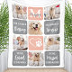 Celebrate your best friend with a custom pet memorial photo collage blanket in a modern grey and peach pink colour block design. This unique pet memorial dog photo keepsake blanket is the perfect gift for yourself, family or friends to honour those loved . We hope your photo collage dog memorial blanket will bring you joy , peace , and happy memories . Quote " Your life was a Blessing , your memory a Treasure , you are Loved beyond words , Missed beyond measure " . When you have an abundance of precious memories and one photo isn't enough, our dog blanket has 6 precious photo spots.. See 'personalise this template' to change photos, monogram initial and name . It is best to crop your photos centred prior to upload . COPYRIGHT © 2022 Judy Burrows, Black Dog Art - All Rights Reserved. Dog Memorial Pet Loss Modern Trendy Photo Collage Fleece Blanket