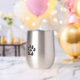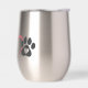 This uplifting stainless steel wine tumbler is a great way to show love for your fur-baby while adding good vibes to your wine time. The charcoal heart shape cut-out paws and pink hand drawn hearts make this insulated tumbler perfect for rescue dog moms and dog lovers. Woof!