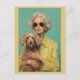 Happy Mother's Day dog mum in yellow in front of a mint green background