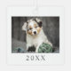 On the back, you can showcase a second photo, with the year displayed at the bottom in matching serif font—perfect for marking the current year or the year your furry friend was born or adopted. The white background and soft grey text give it a clean, timeless look that works beautifully with any tree décor. All fonts, colours, and photos can be fully customised to match your style. A thoughtful and heartwarming ornament that makes a perfect keepsake for dog lovers or any pet owner.