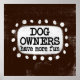 "Dog Owners Have More Fun" is a cute text design in brown with black text, along with a white accent shape and white textured whimsical dots surrounding it.