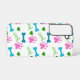 Do you like cute phone cases? This adorable phone case has a pattern of pink dog paws, blue bones, green hearts and the word woof in green.