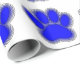 A dog paw print cartoon style with outlines. Original design in blue. For people that love dogs.