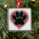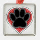 Dog Paw In Red Heart With Outlines Metal Tree Decoration