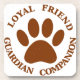 A dog paw print with distressed effect. Text and and drawing in brown.