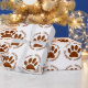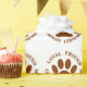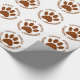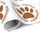 A dog paw print with distressed effect. Text and and drawing in brown.