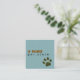 A stylish dusty blue square card with your pet store name... and the image of a dog paw... with additional information at the back...