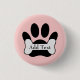 Dog Paw Print And Bone On Baby Pink 3 Cm Round Badge