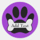 Dog Paw Print And Bone On Light Purple Classic Round Sticker