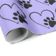 Dog Paw Print and Heart on Purple Wrapping Paper