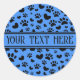 Dog Paw Print and Hearts With Custom Name Blue Classic Round Sticker