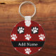Dog Paw Print Buffalo Plaid In Black and Red Key Ring