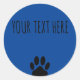 Dog Paw Print Custom Text Blue Classic Round Sticker