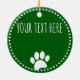 Dog Paw Print Custom Text Green Ceramic Tree Decoration