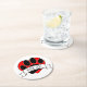 Cute cartoon style dog paw print, red heart and banner. Custom decorative paper coasters.