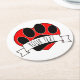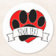 Dog Paw Print Red Heart Banner Round Paper Coaster