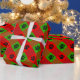 Black dog paw print pattern. Red and green squares. Christmas gift wrap idea for dog lovers and their dogs.