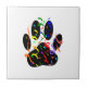 Dog paw print with confetti and party streamer. Custom square ceramic tiles with an original design. Unique gift idea.