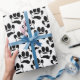 Dog Paw Prints And Bones Pattern Black White Wrapping Paper