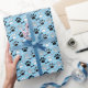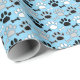 Dog Paw Prints and Bones Pattern Blue Wrapping Paper