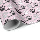 Dog Paw Prints and Bones Pattern Pink Wrapping Paper