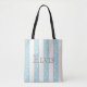 Dog Paw Prints on Pale Blue & White Stripes Custom Tote Bag