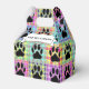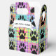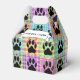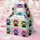 Cute dog paw print in square. Faux quilt print. Custom white favour boxes. Edit text to customise. Dog party decor idea.