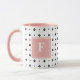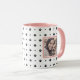 This Dog Paw Monogram Photo Mug combines sleek style with a playful, pet-themed design. Featuring a white background with a lively pattern of black paw prints, it’s the perfect canvas for personalising with your initials on one side. The mug's soft pink handle and interior add a charming contrast, creating a stylish yet sentimental piece. Showcase a favourite photo of you and your furry friend framed in pink to make each coffee or tea break feel personal and heartwarming. An ideal gift for dog lovers who want to keep their pet close by throughout the day. Designed by Anna Szalacha, Happy Ann Designs 2024.
