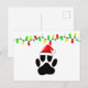 Dog Pawprint Santa Hat Christmas Lights Holiday Postcard