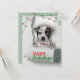 Celebrate the holidays with this cute Christmas card featuring an adorable black and white speckled dog peeking out from a scroll of torn white paper. Set against a clean and simple white backdrop with festive christmas lights in the corners, giving it a splash of colour. Perfect for dog lovers and anyone looking to spread holiday joy, this flat card is a delightful way to send your seasonal greetings. Customze the words, font, font colour and the back of the card. Share the spirit of the season with family and friends through this whimsical and heartwarming design!