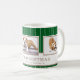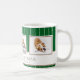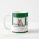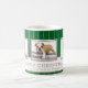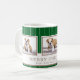 Dog Pet 3 Photo Collage Merry Christmas Coffee Mug. Stylish and modern dog Christmas holiday photo mug with 3 photo collage, Merry Christmas and a custom text. Add three photo. Personalise the text any way you wish or delete it. The background features a green background with white stripes. Great as a Christmas gift or a keepsake mug for yourself.