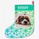 Dog Pet Photo Snowflake Snow Pattern Large Christmas Stocking. Add your name. Insert your favourite photo into the template. Modern holiday stockings for a dog or any other pet owner.