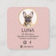 Give your pet’s brand a charming and feminine touch with this blush pink square business card, featuring a custom pet photo, playful bio, and a scannable QR code for quick follows. Perfect for pet influencers, breeders, groomers, or dog lovers who want a soft yet stylish networking piece.