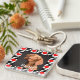 Make your own custom dog photo keychain with your own puppy picture and dog name or other text. Just click to personalise the template and replace the dog photo and name with your own. Makes an excellent personalised gift idea for any dog lover: dog mum, dog dad or family.