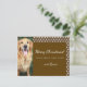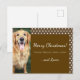 Personalise your Christmas greeting with this cute custom holiday postcard that features a photo of your best pal and the names of your family members. This personalised card has a warm dark brown background with sides of white polka dots.