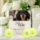 Give guests a fun, tennis ball favor to take home to their pets with this Dog Photo Wedding Tennis Ball Favor Pedestal Sign! This design features a circle photo frame with script font to include your custom, wedding favor note. Have a custom request? Message me!