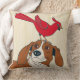Dog Pillow with Red Bird on Nose – Cute Animal Thr