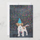 A cute illustration of a dog partying and having fun! Puppy wearing a party hat and blowing party horn with confetti raining down on it. Let the celebrations begin! Perfect for anyone who loves funny animal illustrations. Ideal for a birthday party invitation. Matching party decor can be viewed in this design's collection.