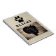 Dog Puppy Paw Photo and Name Rustic notebook. The notebook has a black paw print, photo and a name - personalise the photo and the name with yours. The background is a beige rustic texture. You can also use this product for any pet you want.
