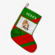 Personalised dog photo and name Christmas stocking. Your dog or any other pet will love this fun Christmas stocking personalised just for him. Insert your dog photo and personalise it with your pets name. The stocking has red and green stripes in knitting look - this makes it look festive and stylish. Plenty of room for dog treats.