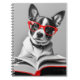 Black and White Picture of a dog Reading a read with a colour splash of red glass frame a book cover