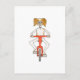 This cute dog is on a push bike, and he is cycling. The bicycle is red. This printed image was originally a hand drawn and painted illustration.