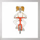 This cute dog is on a push bike, and he is cycling. The bicycle is red. This printed image was originally a hand drawn and painted illustration.