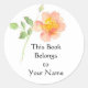 A stick-on bookplate with a peachy-coloured dogrose, painted in watercolours, and the text, 'This book belongs to Your Name' for you to customise.