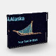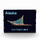 Let 'em know what you do for fun during winter. A dog sled superimposed on a starry background. Text reading, "Alaska" appears in glowing blue and white. You may add your own additional text both on the sled bag and at the bottom.