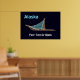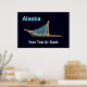 Let 'em know what you do for fun during winter. A dog sled superimposed on a starry background. Text reading, "Alaska" appears in glowing blue and white. You may add your own additional text both on the sled bag and at the bottom.