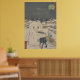 Hirokage’s ukiyo-e print “Comic Incidents at Famous Places in Edo, No. 22,” showing a playful dog stealing a workman’s meal from a snow Daruma. A lively 19th-century Japanese artwork perfect for posters, mugs, and more.